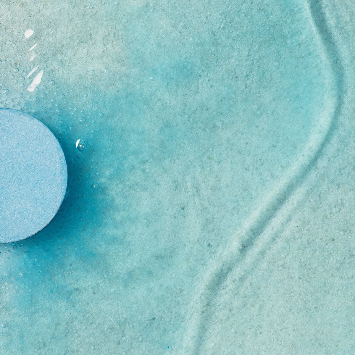 炭酸水素Na、クエン酸、クエン酸1Na、マルトデキストリン、PEG-150、香料、含水シリカ、タルク、海塩、ヤシ油、青1、ガーデニアタイテンシス花、酸化鉄、トコフェロール、シリカ